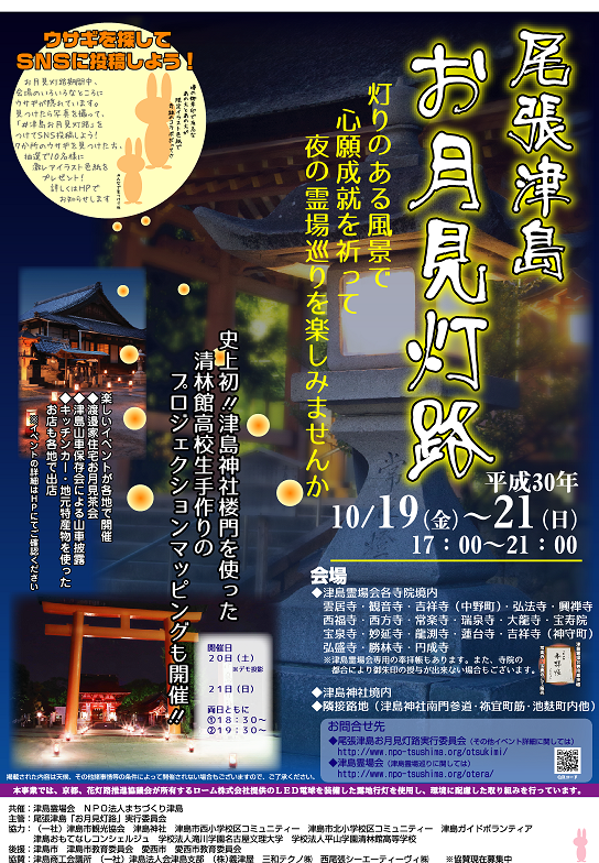 平成30年10月19日(金)~21日(日)に当所が協賛している「尾張津島 お月見灯路」が行われます。